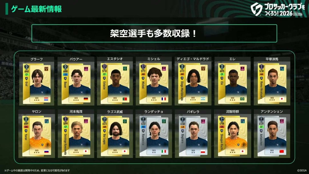 また、2025年8月に開催されたクローズドβテストのフィードバックを反映させて、要望の多かった架空選手は正式リリースでもより多くの選手が登場するようだ。往年のレジェンドを彷彿とさせる架空選手はもちろん、アンタンシェンといったいわゆるマイナーズ選手としてゲーム序盤を助けてくれる選手の姿が明らかになっている。