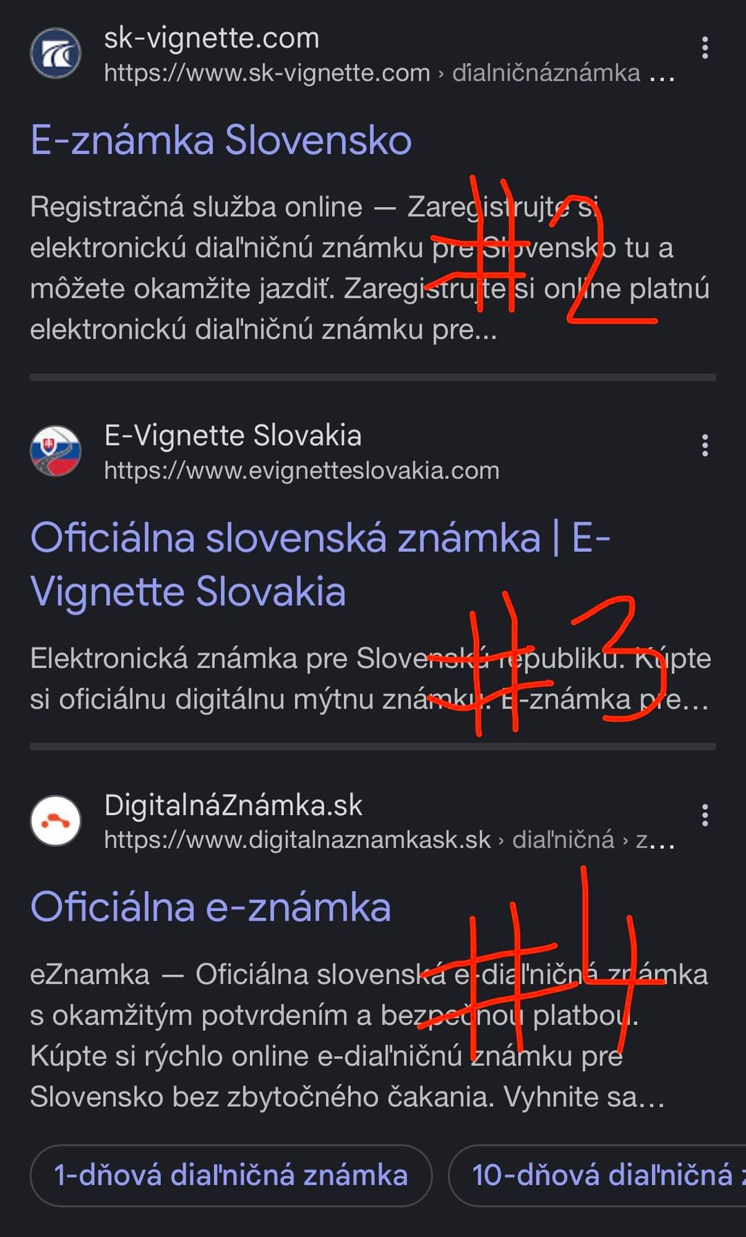 スロバキア人の大多数が毎年恒例の高速道路スタンプを購入する時期が近づいていることを考慮して、オンラインで購入する場合は購入サイトに注意してください。 Google で検索しようとすると、最初の 4 件の検索結果には、公式 Web サイトを装い、追加の「サービス料」を払って高速道路の標識を販売する詐欺師が表示されます。