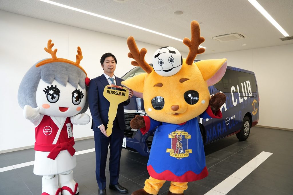 このたび、奈良クラブではパートナーの「奈良日産自動車株式会社」様より、ラッピングカー(キャラバン)のご提供があり、2026年1月20日に奈良日産自動車株式会社 代表取締役社長 田代雄亮様ご参加の下、納車式が執り行われました。地域のイベント活動やサッカー教室などの移動に活用させて頂きます。ご支援頂き、ありがとうございます。