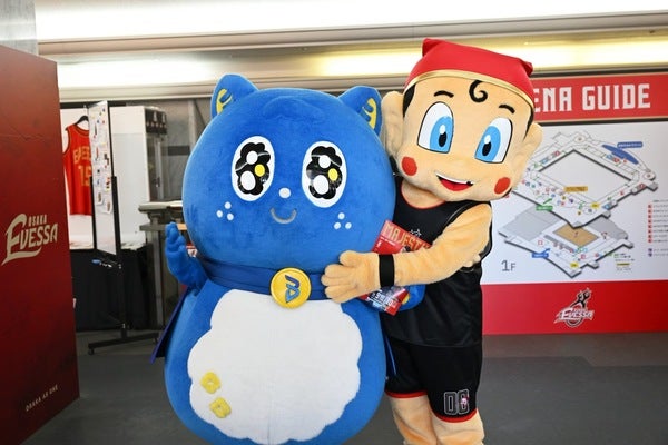 大阪エヴェッサ マスコット「まいどくん」・大阪ブルテオン マスコット「パピネス」登場