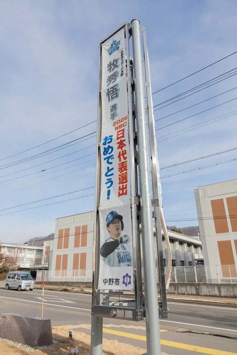牧は同市のスポーツ大使を務めており、懸垂幕には「牧秀悟選手 2026WBC日本代表選出おめでとう!」との文字が躍った。