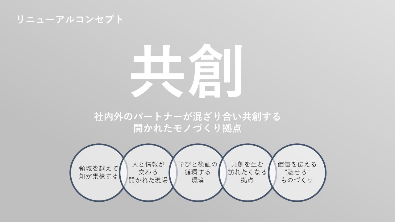 本拠点は、データ活用とデザインを掛け合わせ、開発の質とスピード向上、エンゲージメント向上、採用力強化につなげる共創型のモノづくり拠点です。人や空間の使われ方をデータで捉え、改善を重ねる仕組みを取り入れることで、開発力と人材価値を継続的に高める工場オフィスモデルを構築。また、法人向けの工場・オフィス見学も受け入れ、製造業における働く環境のアップデートにも貢献していきます。