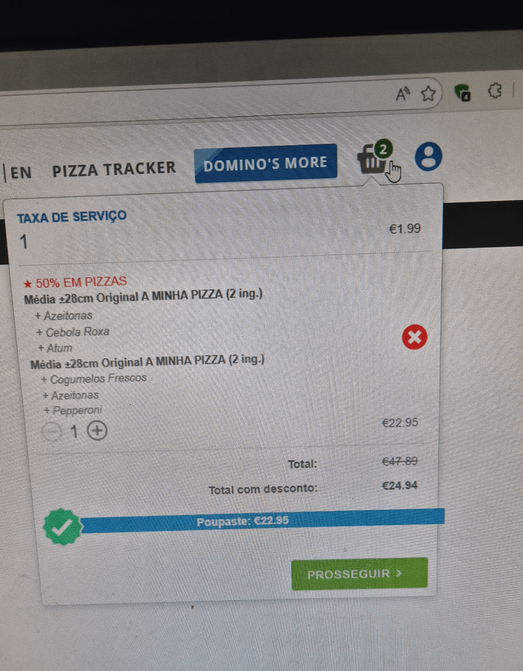 Twitter Pinterest Facebook Tumblr LinkedIn Bluesky Reddit Threads ドミノピザに注文しようとしたのですが、ピザ 2 枚が 50% 割引になっていることがわかりました…しかし…これが彼らの要求する価格です Portugal