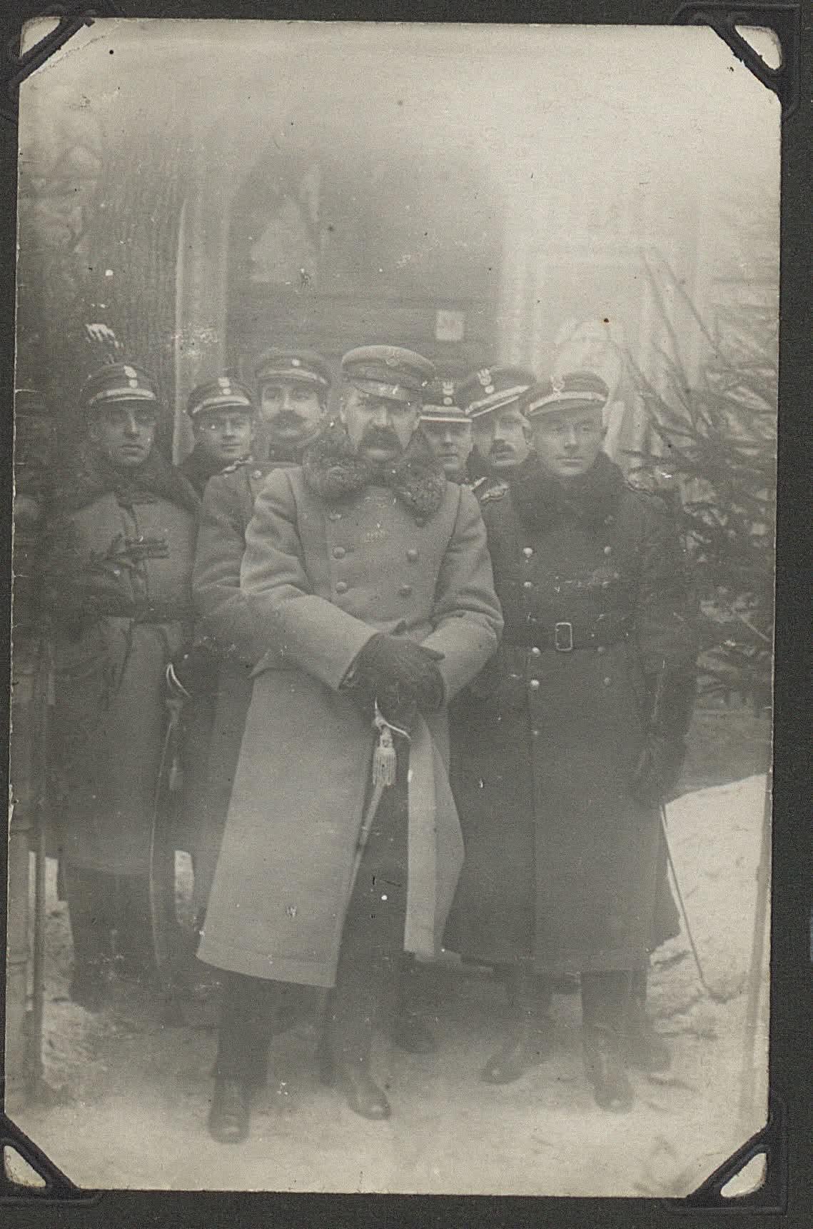 1920年1月28日、ダウガフピルスでラトビア軍将校らと会談中のユゼフ・ピウスツキとエドワード・リズ=シミグウィ。