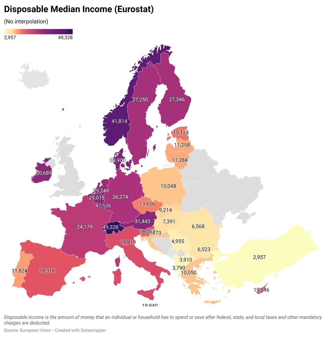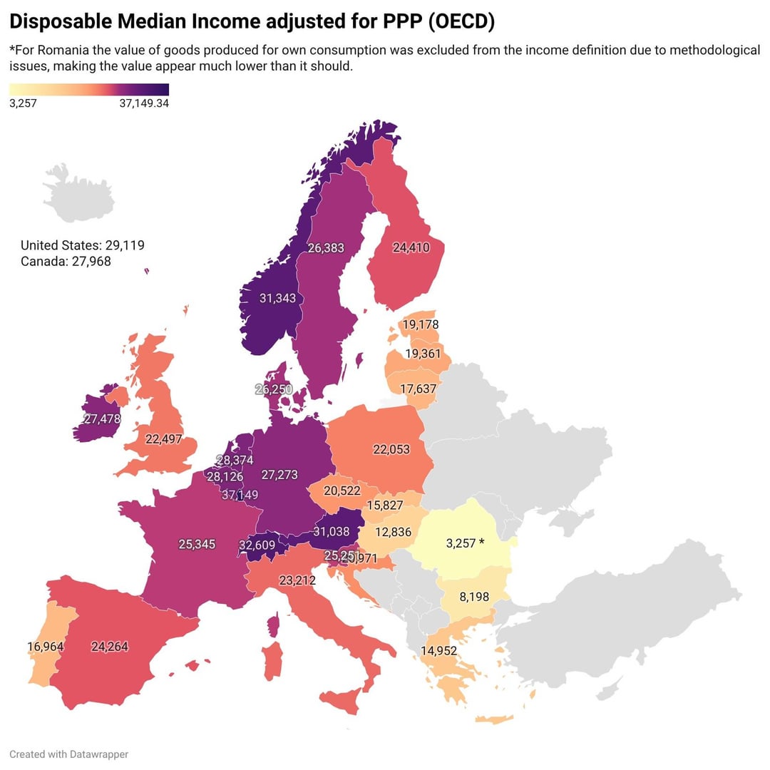 Twitter Pinterest Facebook Tumblr LinkedIn Bluesky Reddit Threads ユーロスタットとOECDの可処分所得中央値(PPPおよび名目)の比較 Norway