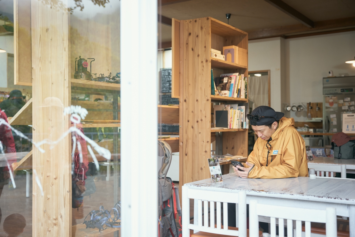 下山後、リフトの駅に直結しているカフェに入った。こちらの店内もなんだかおしゃれな佇まいだ。冷えた体を温めるためにホットコーヒーを頼み、待ってるあいだにその日の登山をふり返る。少し落ち着いたあとは、併設されているショップでお土産を物色。ここでしか変えないものがあればなお嬉しい。剣山の等高線がデザインされている、おしゃれなオリジナル手拭いを買った。