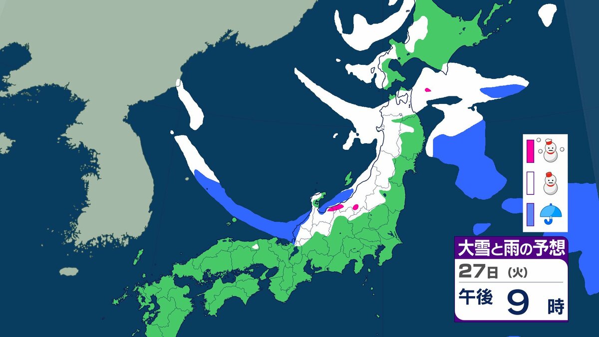気象庁によりますと日本付近は強い冬型の気圧配置となっています。東海地方の上空約1500メートルには、氷点下9℃以下の強い寒気が流れ込んでおり、岐阜県を中心に降雪が強まり、大雪となっています。
