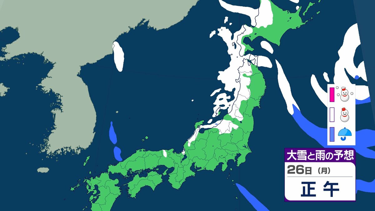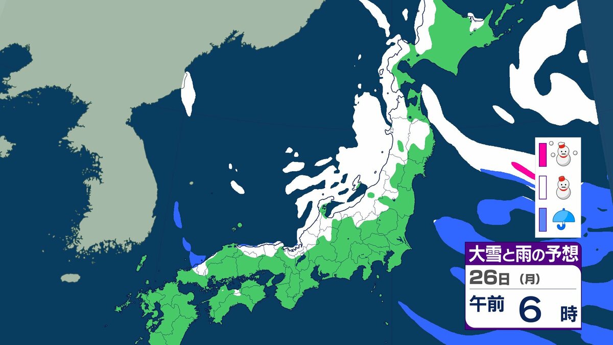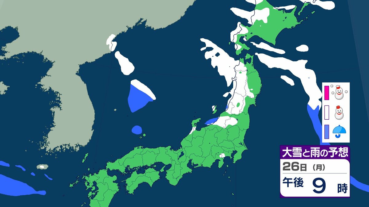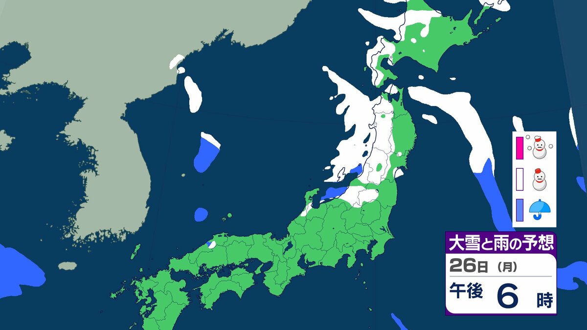 25日午前6時から26日午前6時までに予想される24時間降雪量は多い所で、