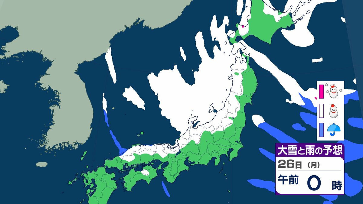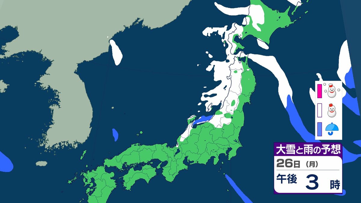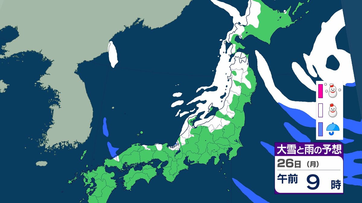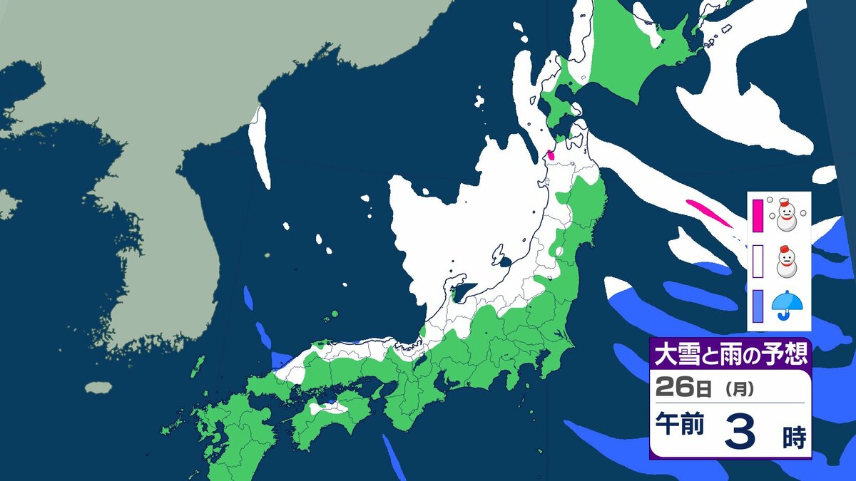 25日午前6時から26日午前6時までに予想される24時間降雪量は多い所で、