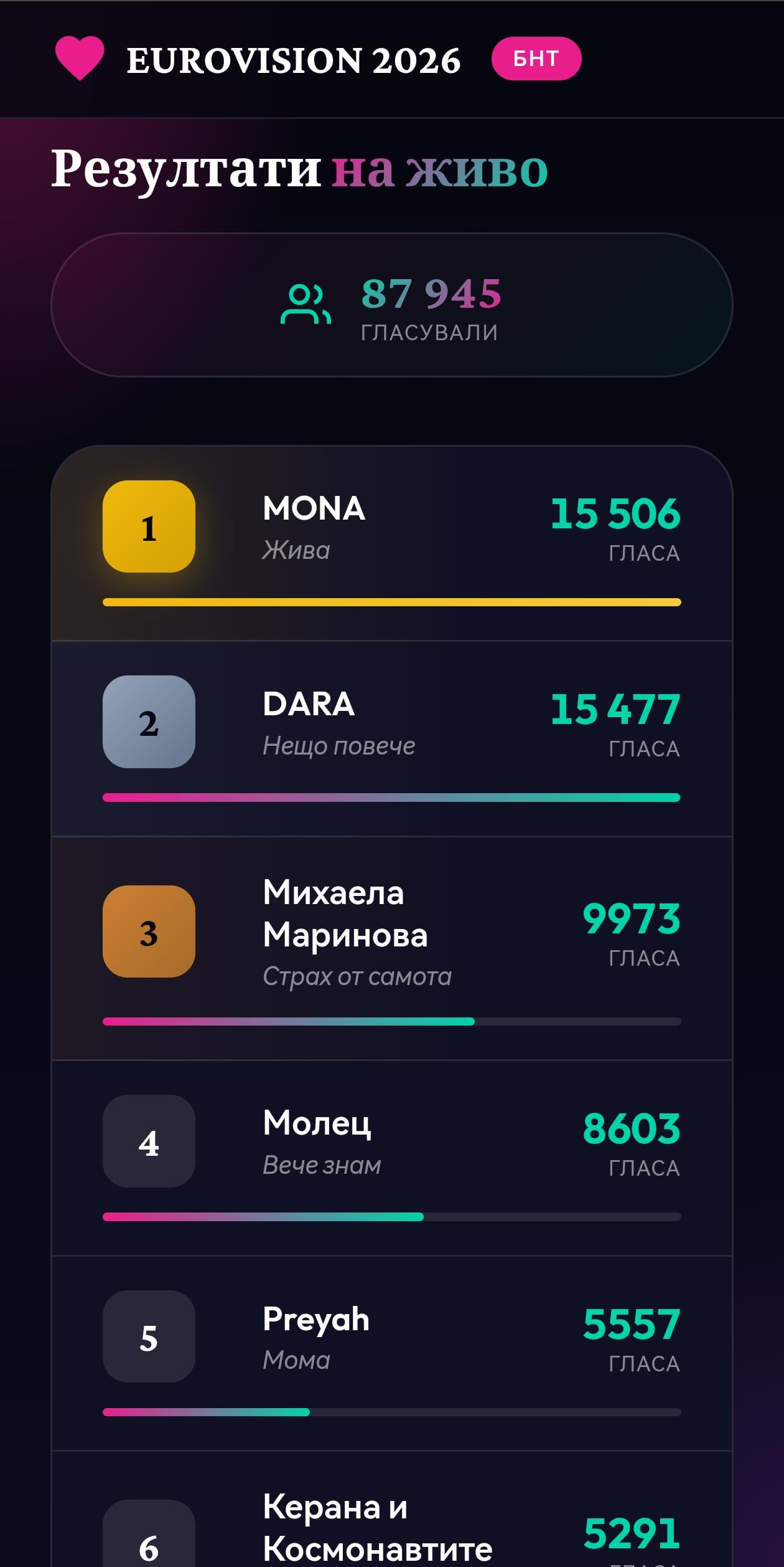Twitter Pinterest Facebook Tumblr LinkedIn Bluesky Reddit Threads ユーロビジョンを見ましたか?参加者やBNTの制作についてどう思いますか?誰が決勝に進むべきだと思いますか? Bulgaria