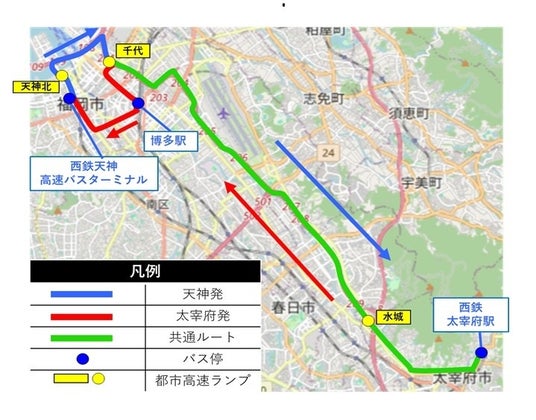 太宰府発 西鉄太宰府駅→水城ランプ→千代ランプ→博多駅前Aのりば(降車専用)