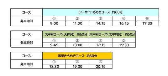 ※同日より、全コースにおいて発着場所が福岡市役所→天神高速バスターミナル0番のりばに変更となります。