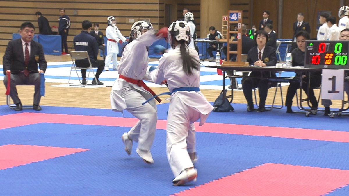 吉田莉歩選手(日本航空中2年)は強気に仕掛ける空手で相手を圧倒。