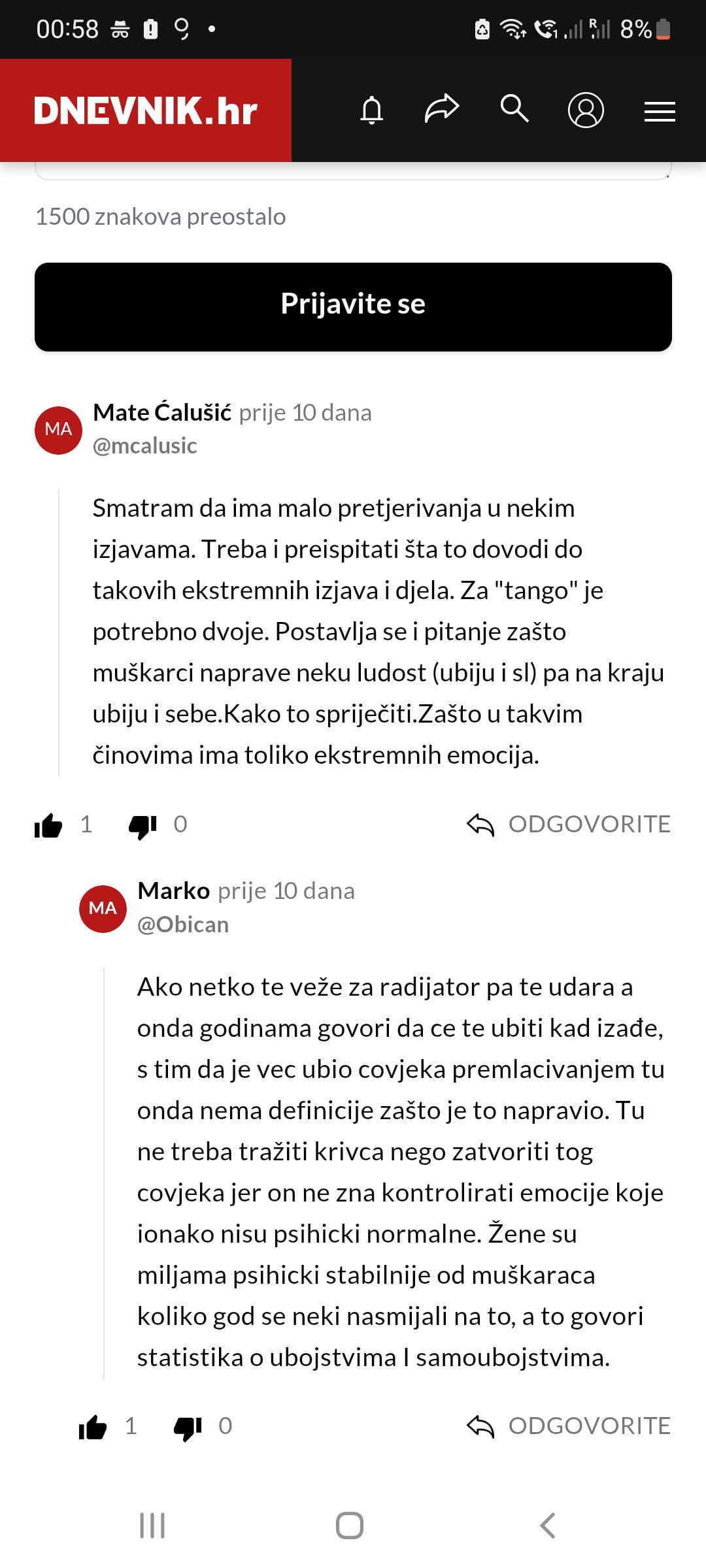 それでは、共感や理解、あるいは少なくとも常識を欠いた人々が多いクロアチアの空気は一体何なのだろうか?以下のコメントで状況全体が説明されました。記事全体を読み終えた後、女性は元恋人が自分を殺そうとしているという事実をすでに受け入れていたと述べ、元恋人は自分が何をしたのか疑問に思ったと述べた。なぜなら、彼は男性で、彼女は女性であるため、ホームレスの男性を撲殺した人には、この行動には何らかの「正当な」理由があるはずだからです。