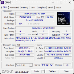 Core Ultra X9 388HのCPU-Z実行画面