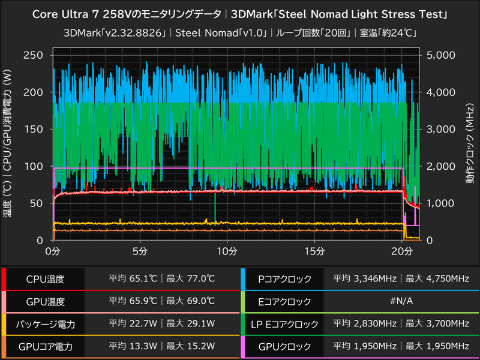 Core Ultra 7 258Vのモニタリングデータ│3DMark「Steel Nomad Light Stress Test」