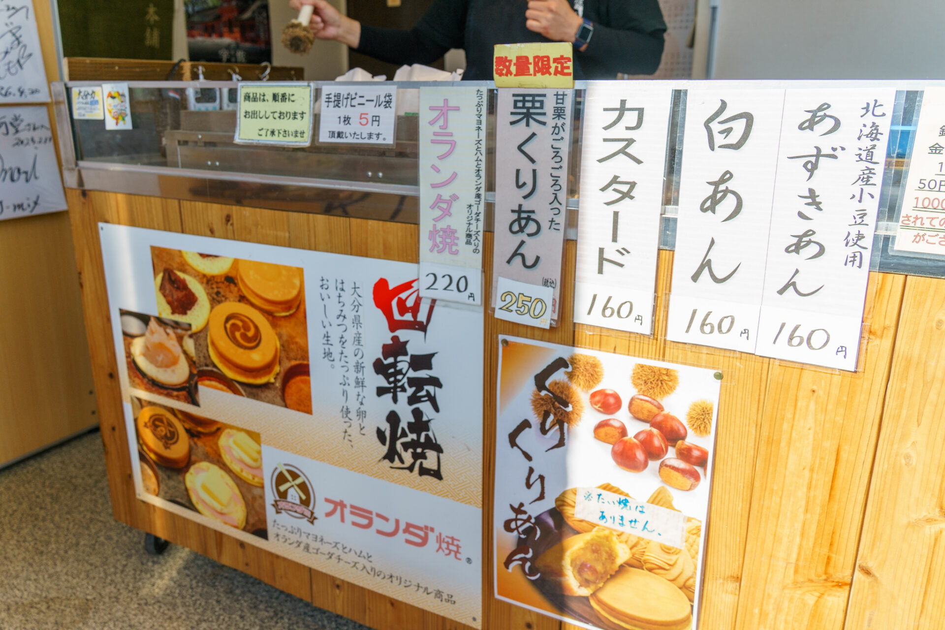 オリジナル商品の「オランダ焼」はもちろん、素材にこだわった回転焼を気軽に楽しむことができます。
