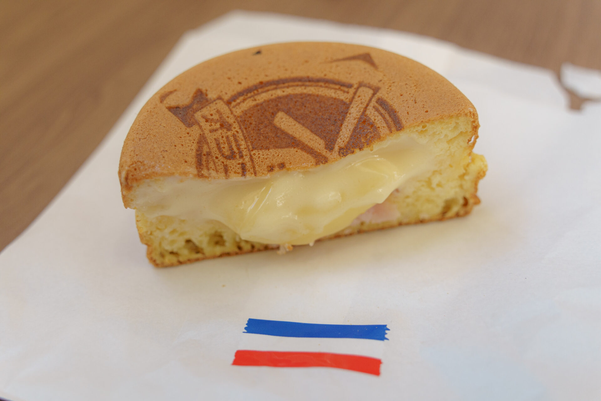 「オランダ焼」のロゴの風車の羽が一枚だけ、円から突き出ているのですが、実際の「オランダ焼」もロゴ同様に「ハム」が突き出ているのだとか!