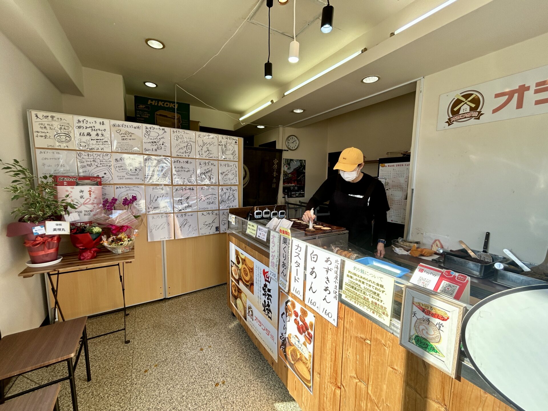 店内には焼き上がりを待つための椅子があり、丁寧に焼かれているところを見ながら出来立てを待つことができます。