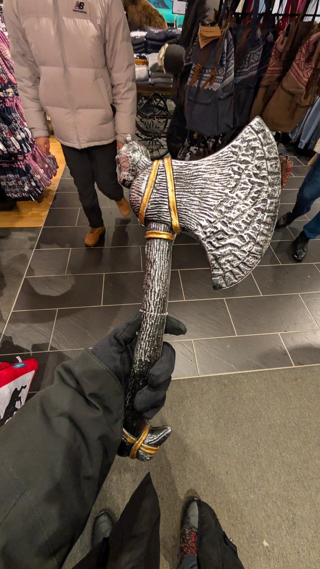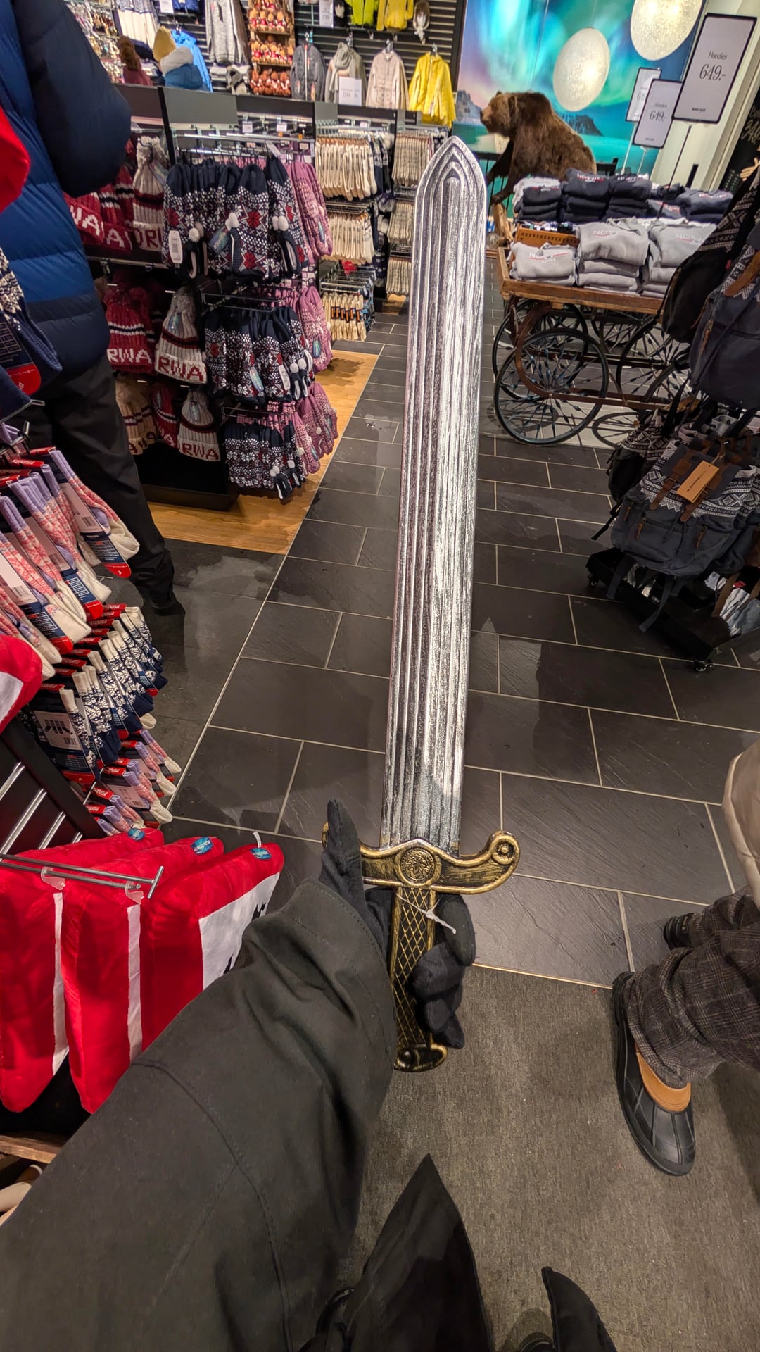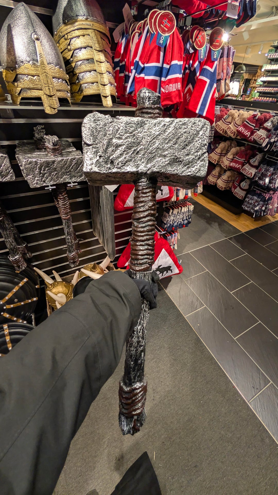 ヴァイキングの武器スタイルのお土産は、おそらく等身大か大きなものでどこで入手できますか。トロムソのウェイ・モルでも同様のものを見つけました(写真)。トロンハイム、ロフォーテン、ベルゲンで入手できるのであれば、同様かそれ以上のものが欲しいです。 Norway