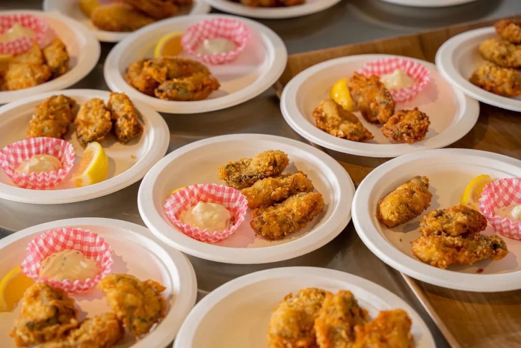 そしてゴール後は島グルメを楽しめる“ご褒美タイム”が用意されています。似島産のカキフライや手作りピザなど、似島ならではのグルメを満喫できます。