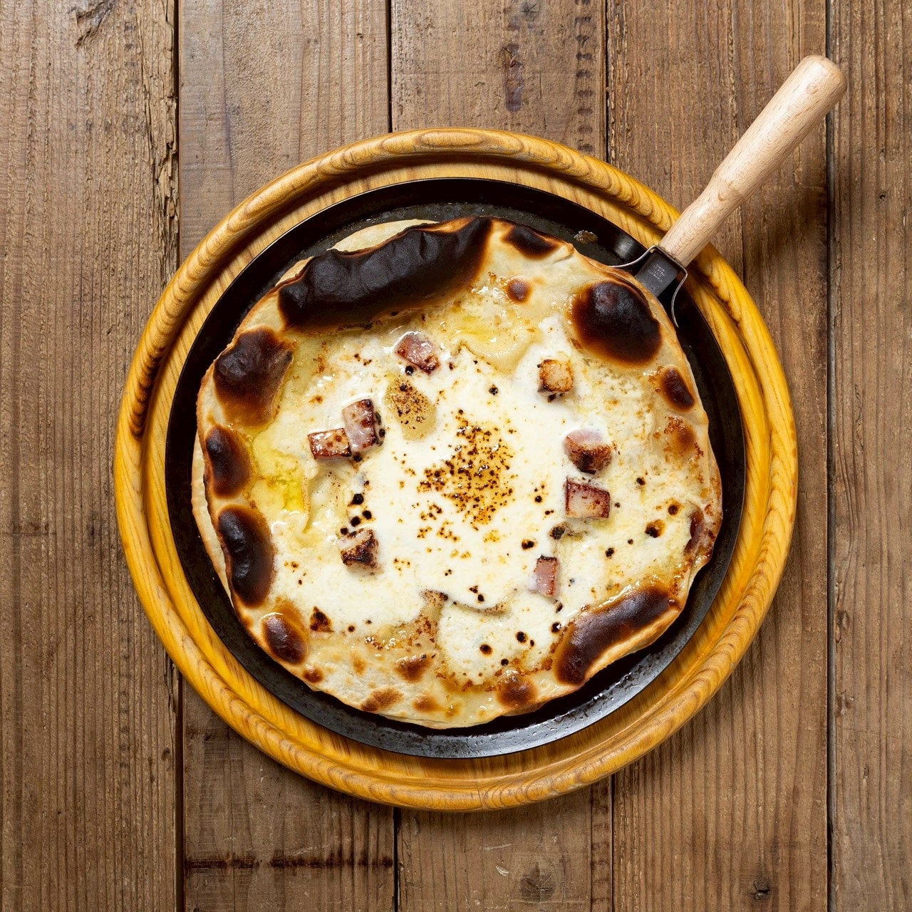 古い建物が持つ味わいを最大限に活かしながら、カウンターやテーブルには温もりを感じさせる古材を使用。