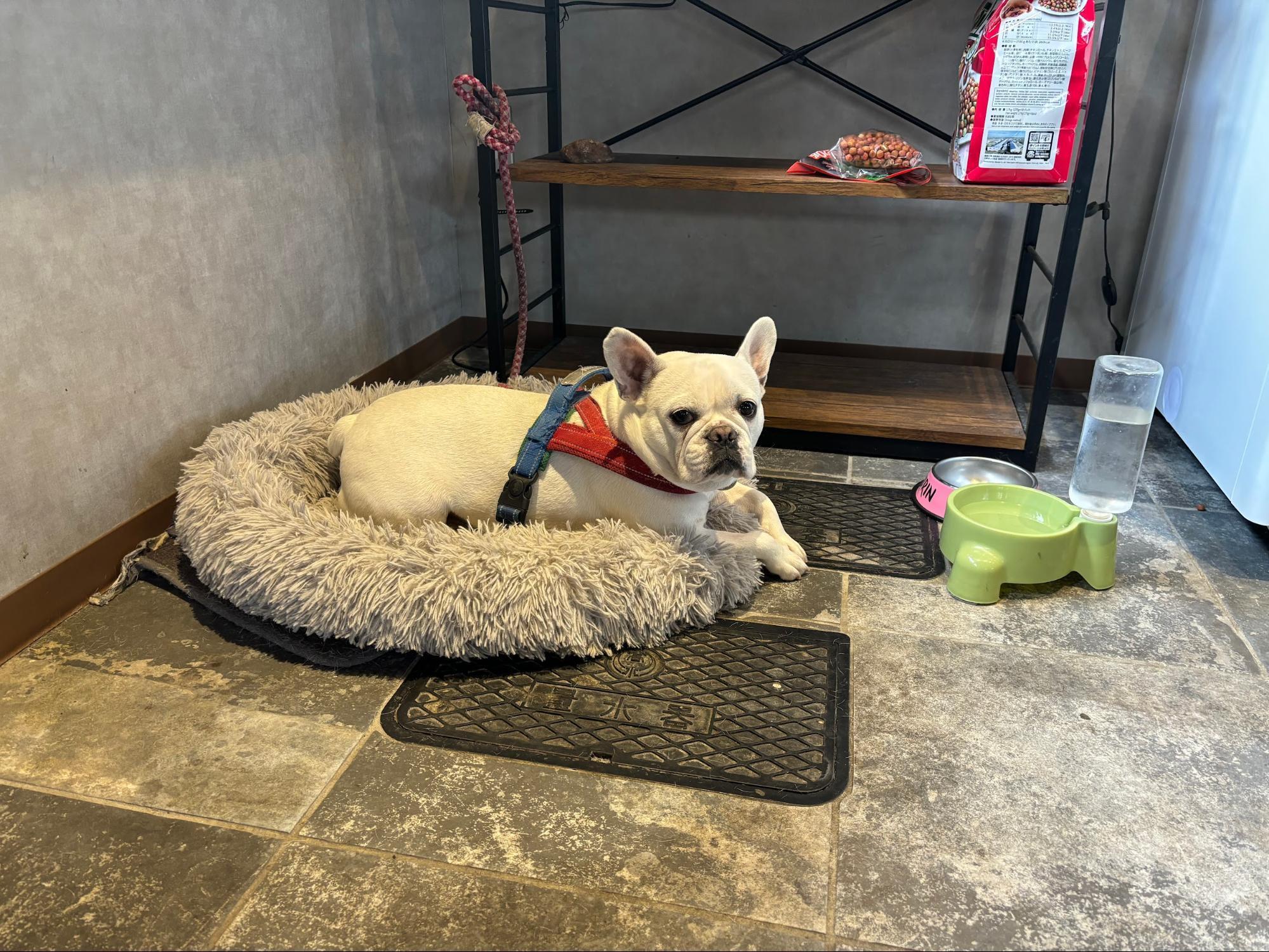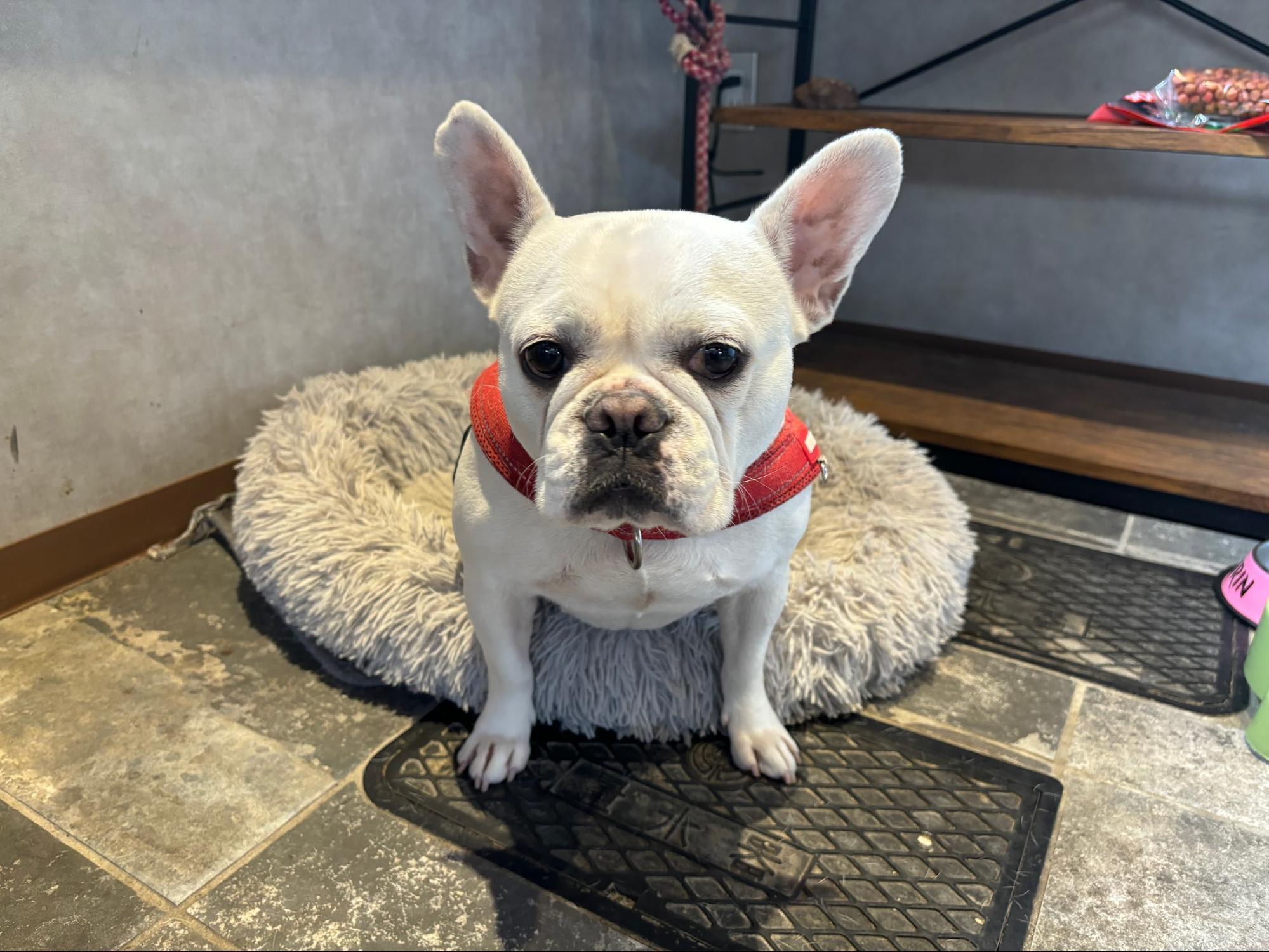 お店の扉を開けると、まずはかわいい看板犬・フレンチブルドッグのプリンさんが元気に迎えてくれました。