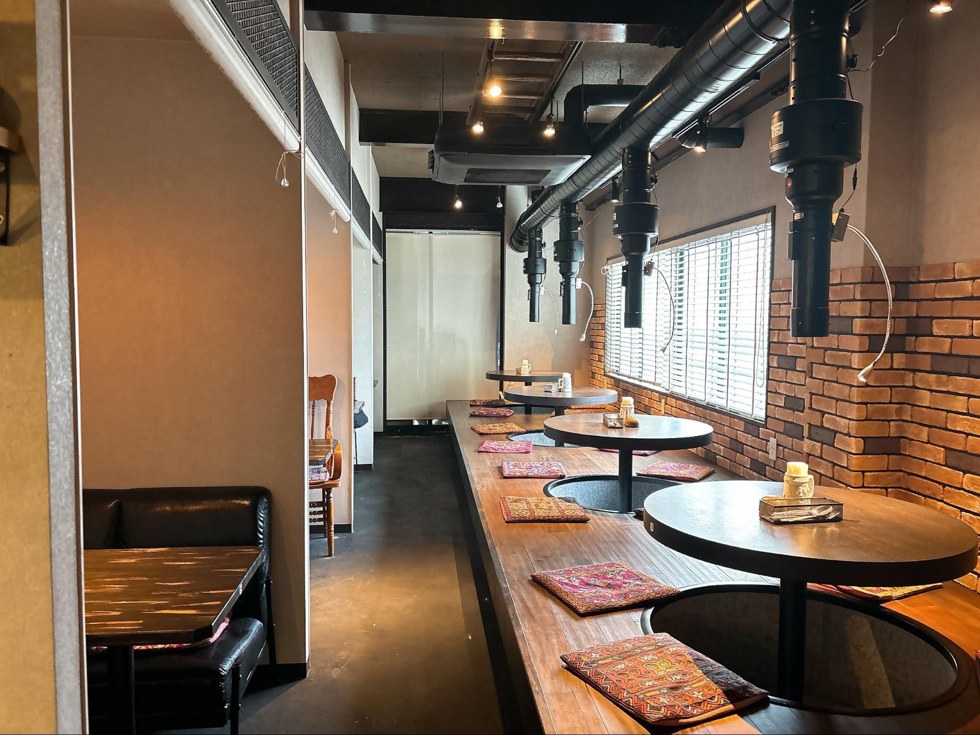 店内はテーブル席のほか、掘りごたつの席もあります。