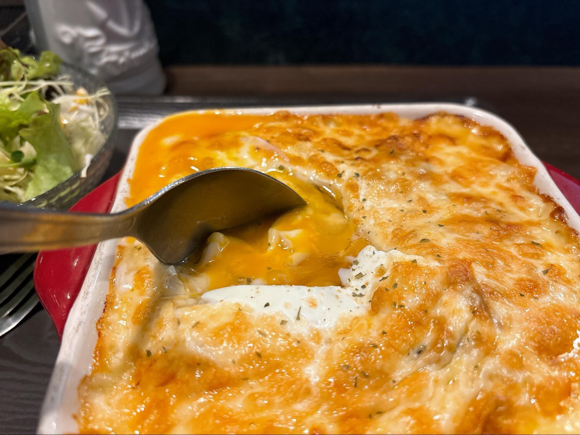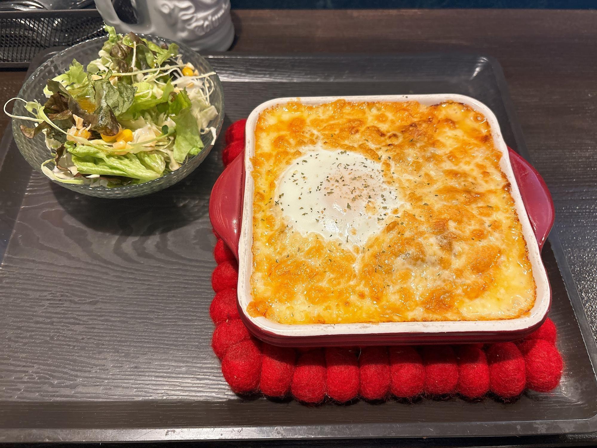 運ばれてきたカレードリアは、卵がのっていて見た目から食欲をそそります。