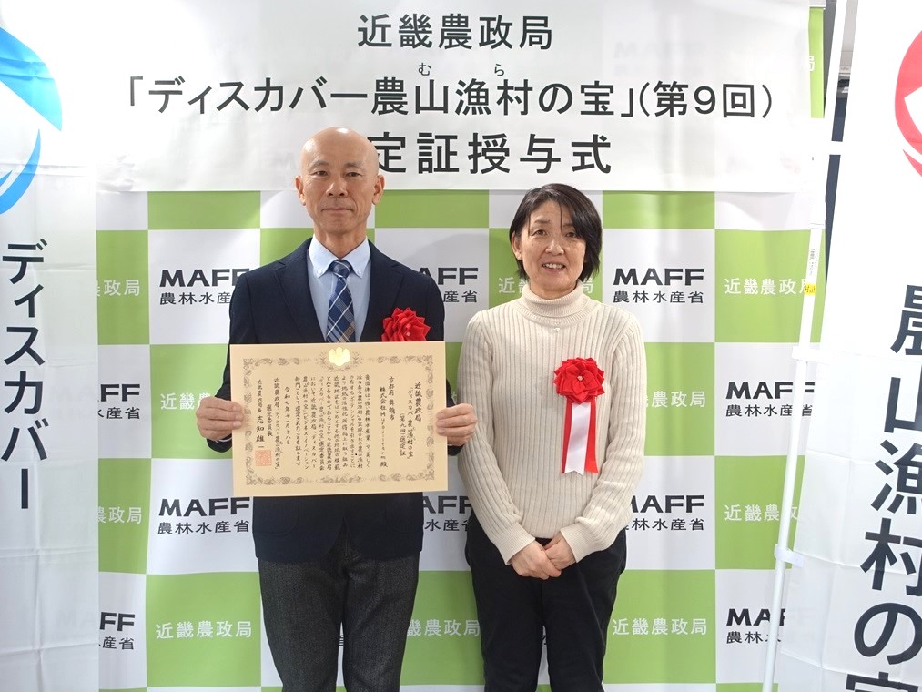 この度、近畿農政局「ディスカバー農山漁村(むら)の宝」(第9回)として、団体7地区及び個人1名を選定しました。