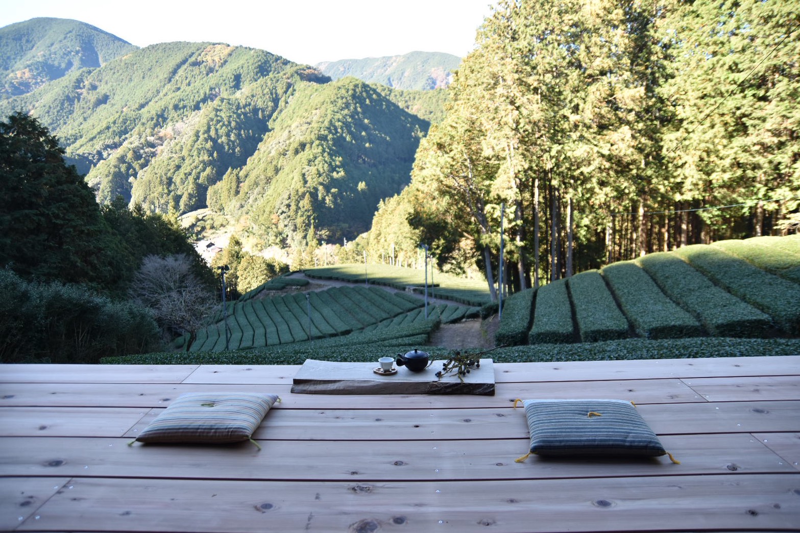 静岡市内の自然豊かなエリア・通称オクシズに位置する玉川地区は、静岡県のお茶の産地の中で最も古い歴史を持つ「本山茶」のルーツとされる場所である。江戸時代から続く「志田島園」は、16代目・佐藤誠洋さんを中心に茶葉の栽培から製造までを一貫して行っている。茶畑を歩きながらお茶の飲み比べや茶工場を見学できるツアーでは、茶葉の栽培や製茶の仕方などつくり手の言葉を通してお茶の奥深さに触れることができる。斜面に広がる茶畑を望むテラス席で味わう煎茶やほうじ茶、紅茶の味わいも格別。茶園の一角にはわさび田もあり、この土地の清らかな水の豊かさを物語っている。