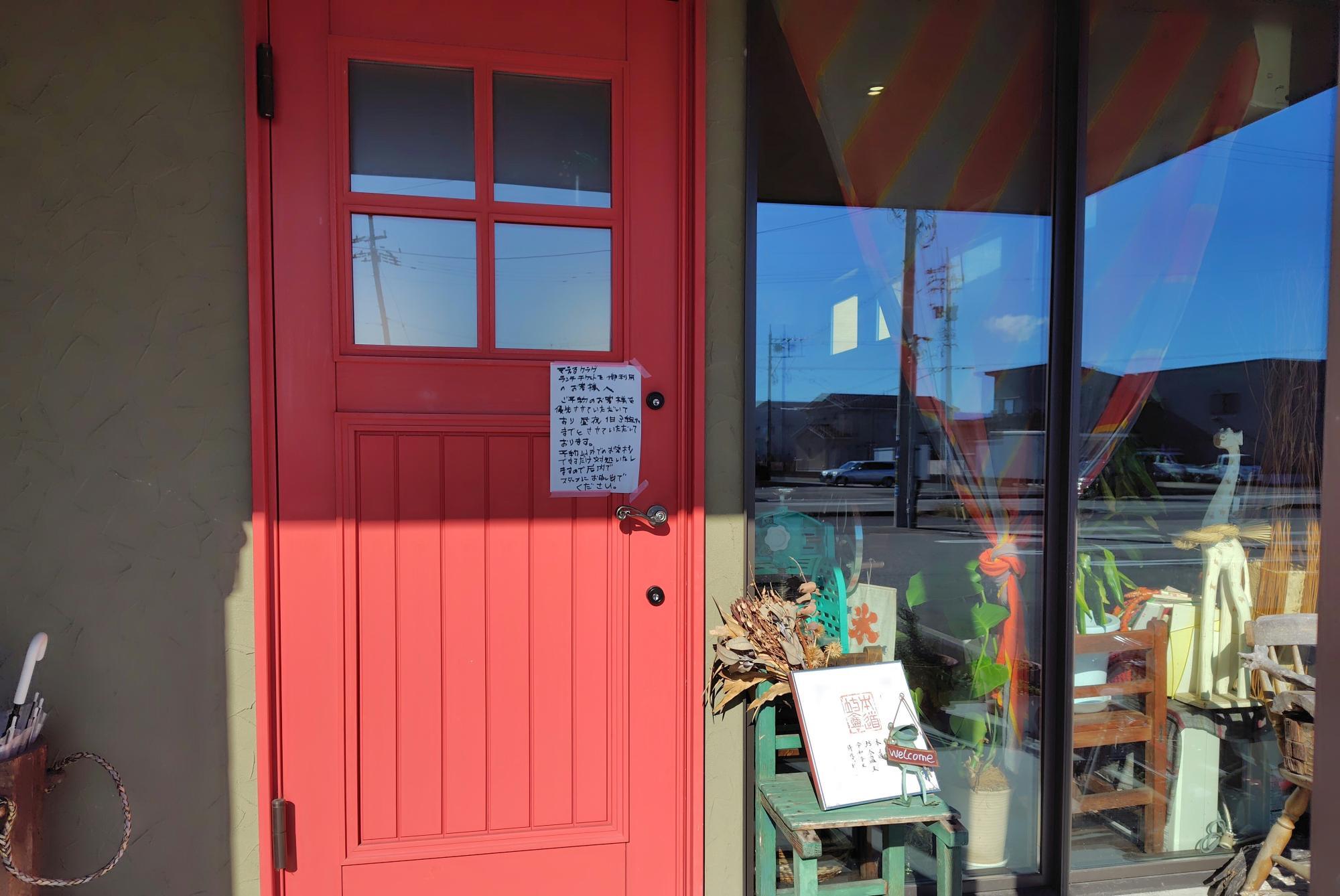 お店の目印は、朱色の可愛らしい扉です。朱色の扉の先には美味しいカレーが待っています♪