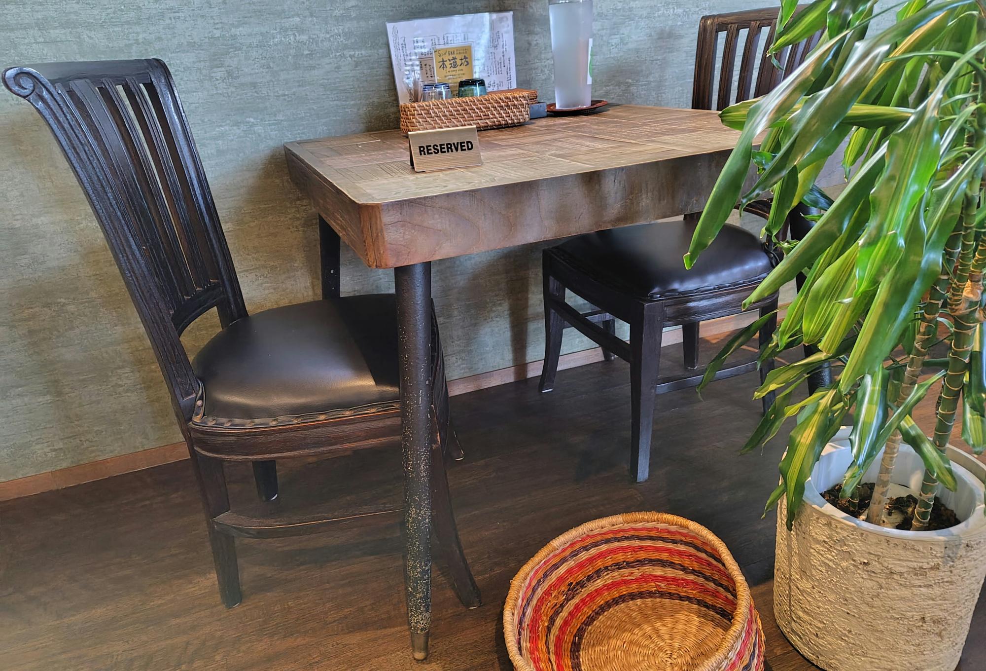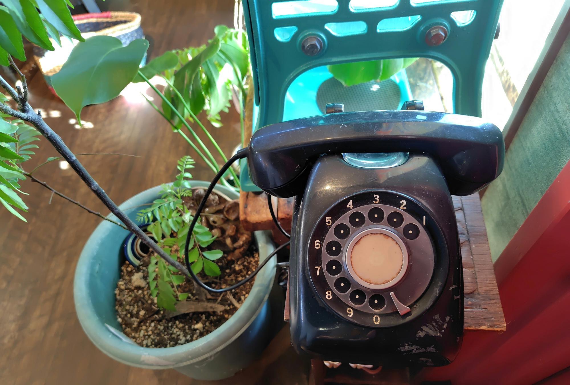 昔懐かしの黒電話の隣に観葉植物が置かれていました。レトロな黒電話が、お店の雰囲気に不思議にマッチしています。