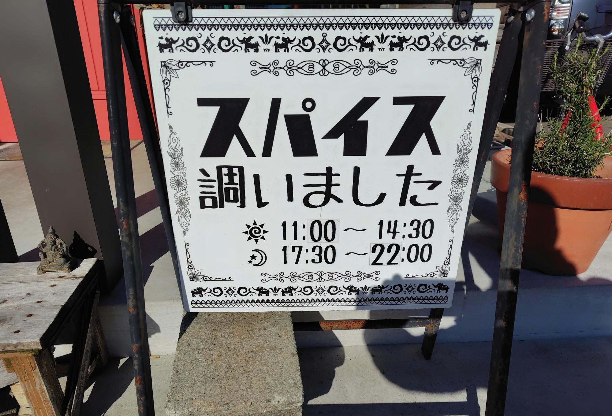 「スパイス整いました」という看板がお店の前にありました。お店の方によると、以前お店は商工会議所の近くにありましたが、5年前に東森田地区に移転されたそうです。また、店主の奥様は、以前保健室の先生をされていたそうですが、退職されてお店の女将さんになられ、ご夫婦で切り盛りされています。