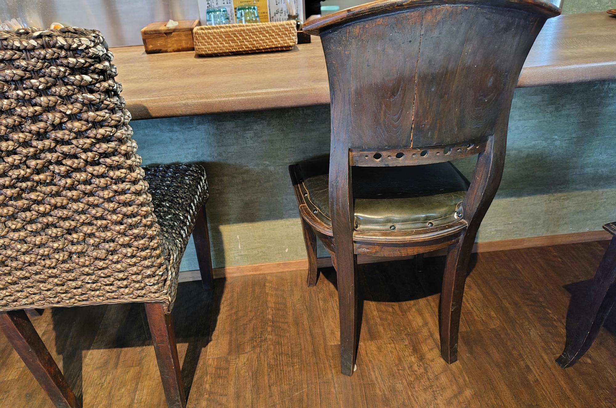 カウンターの椅子もアジアンインテリアという印象で、とてもお洒落です。
