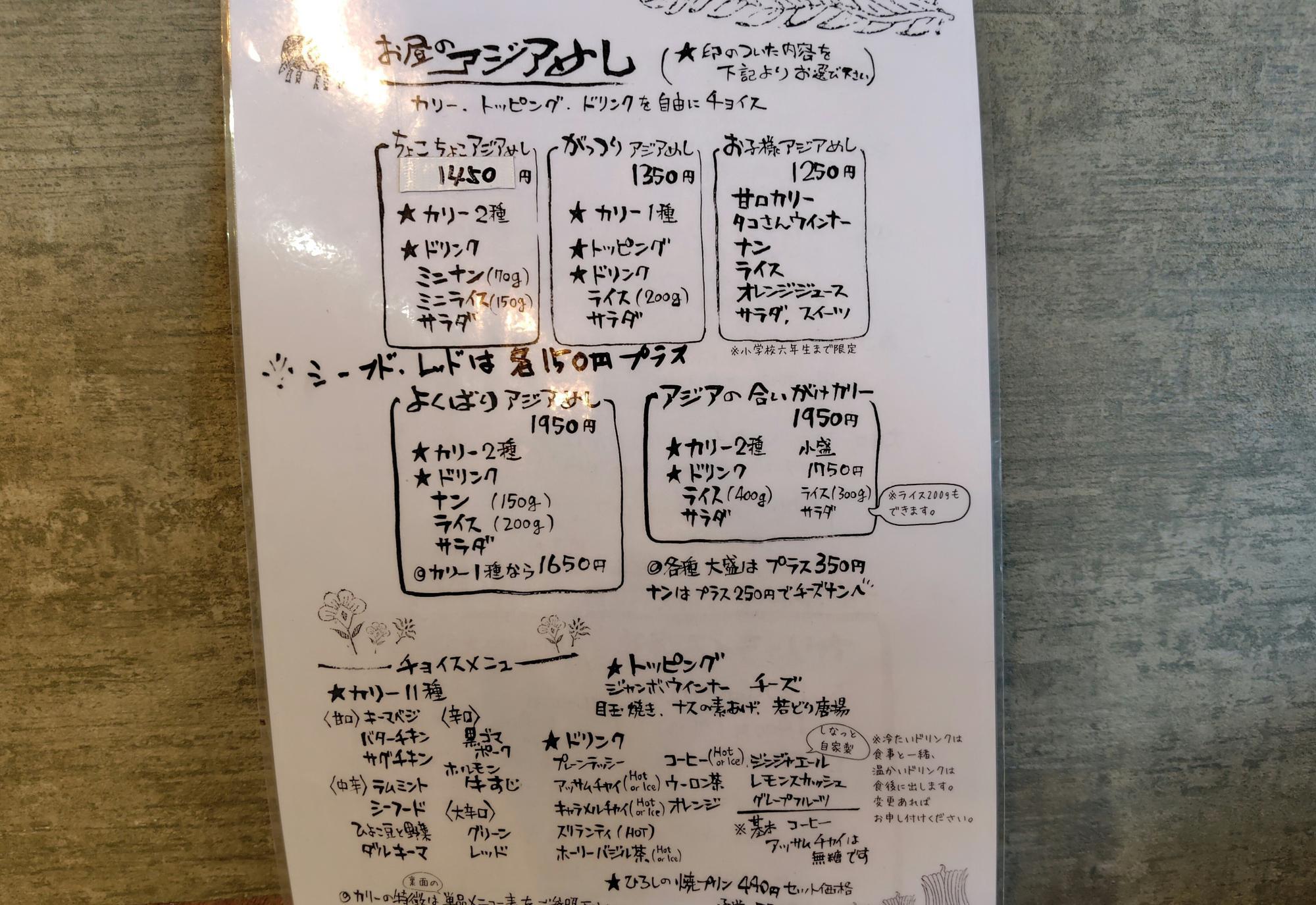 「ちょこっとアジアめし」「がっつりアジアめし」「よくばりアジアめし」などお腹の具合に合わせて、メニューも選べます。皆さんはどれを召し上がりますか??