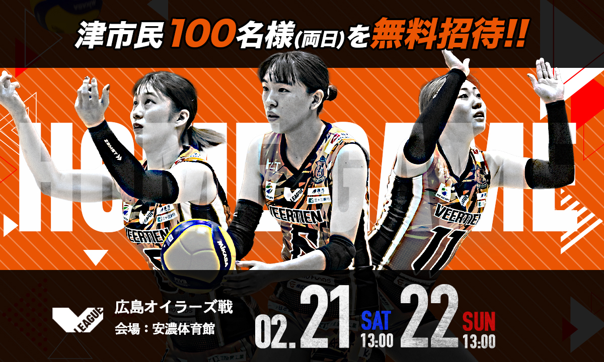 ホームタウン津市にて、2月21日(土)・22日(日)にホームゲームを開催いたします。