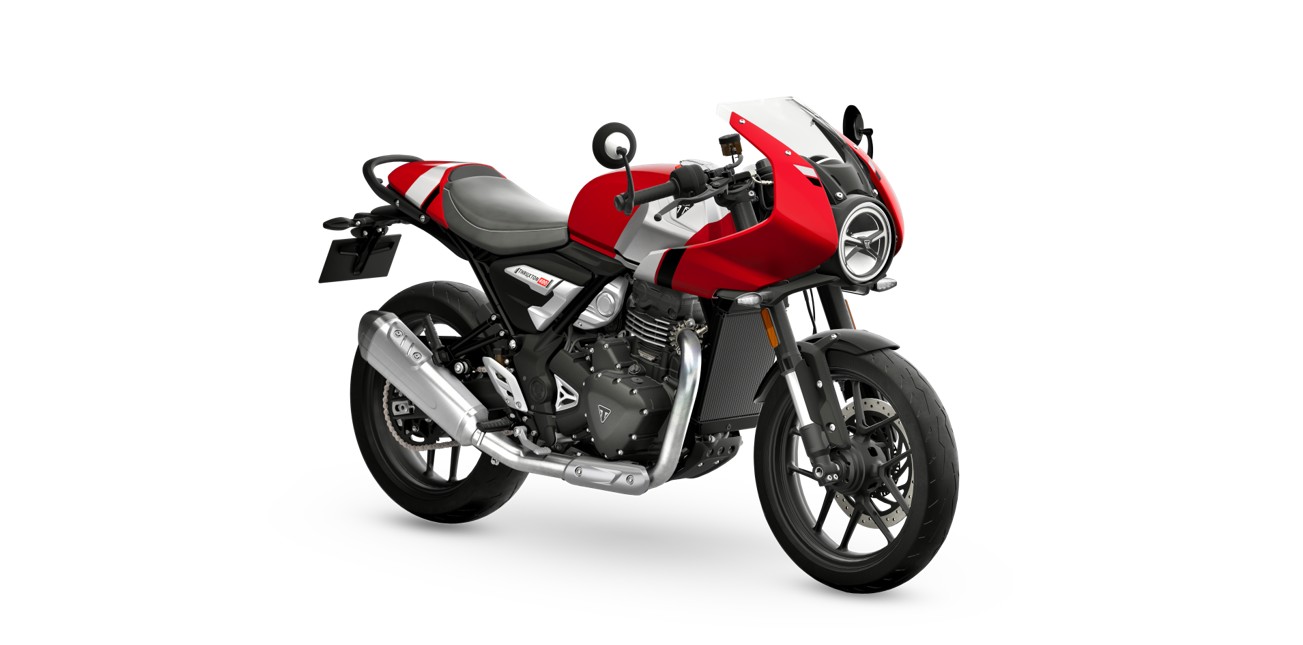 「THRUXTON 400」はアイコニックなカフェレーサーを現代的に再解釈し、刺激的でスポーティーなライディング体験を提供するモデル。「TRACKER 400」はフラットトラックのスピリットに、トライアンフのDNAを融合しアグレッシブで自信に満ちたライディング体験を提供するモデルとしている。