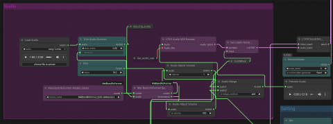多くはLTX-2 I2Vなのだが、S2V固有の物として左上に赤い背景のAudio部分がある。これはMel-Band RoFormerというモデルを使い、ボーカルと演奏などを分離する仕掛けだ。Mel-Band RoFormer Samplerを見ると出力にvocalsとinstrumentsの2つがあるのが分かる。