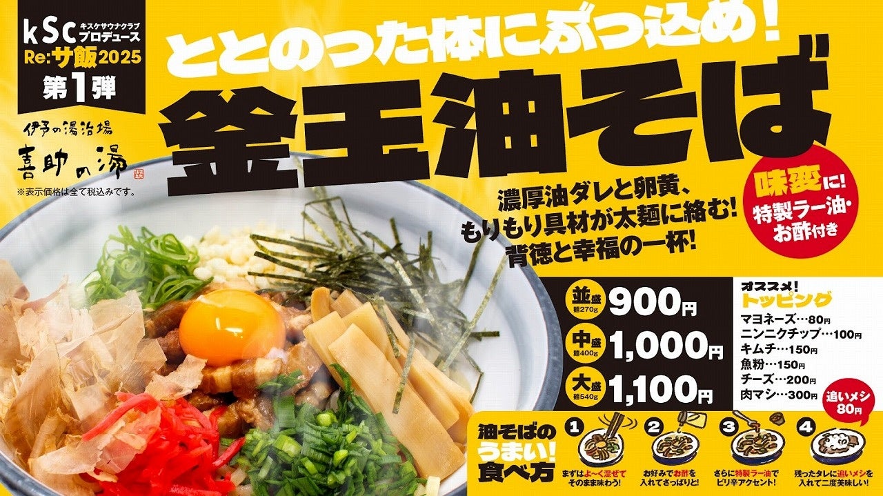 キスケ株式会社(本社:愛媛県松山市、代表取締役社長:山路 義則)が運営する「伊予の湯治場 喜助の湯」内レストラン「愛媛の郷土料理 花ゆらり」では、Re:サ飯2025シリーズ第5弾として、期間限定メニュー「豚骨醤油ラーメン」を2026年2月1日(日)より販売開始いたします。