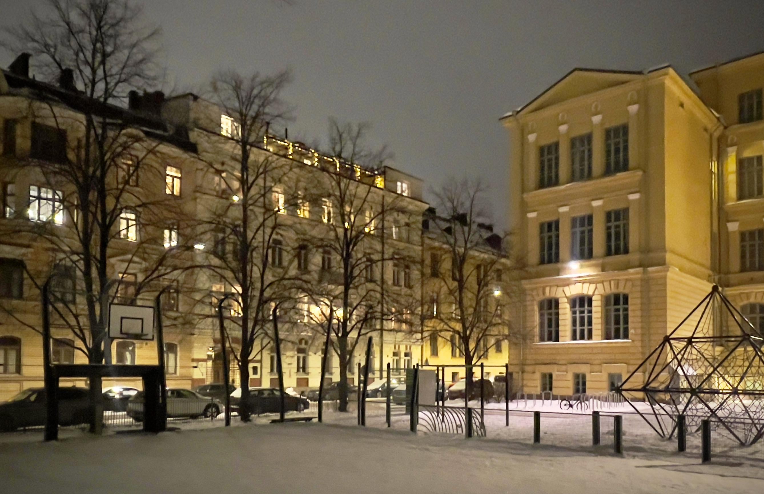 ヘルシンキのカールティンカウプンキからの眺め。右手に校舎。