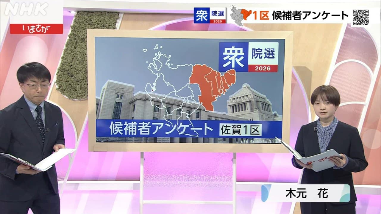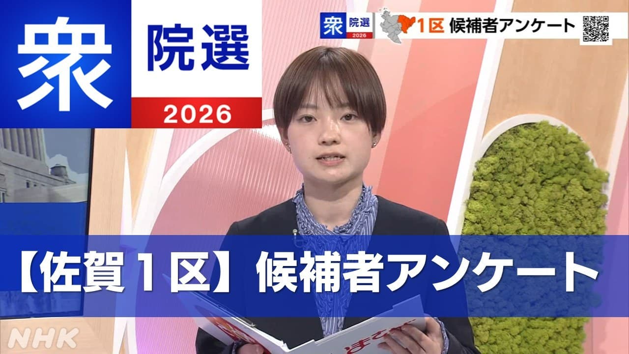 2月8日に投開票が行われる衆院選。NHKでは候補者に重視する政策や考えなどを記述式と選択式で答えてもらうアンケートを実施。今回は佐賀1区の3人の候補者を紹介。佐賀放送局・木元花記者がまとめて解説しました。