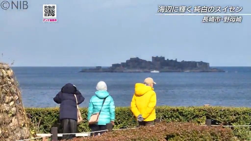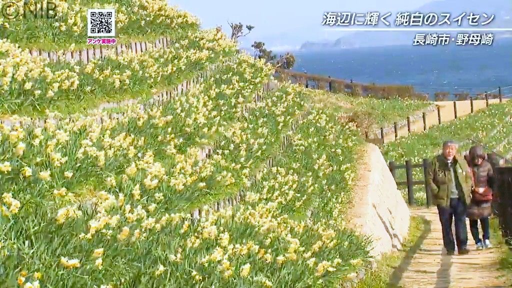 丘を白く染める二ホンスイセン。長崎市の名所で見頃を迎えています。