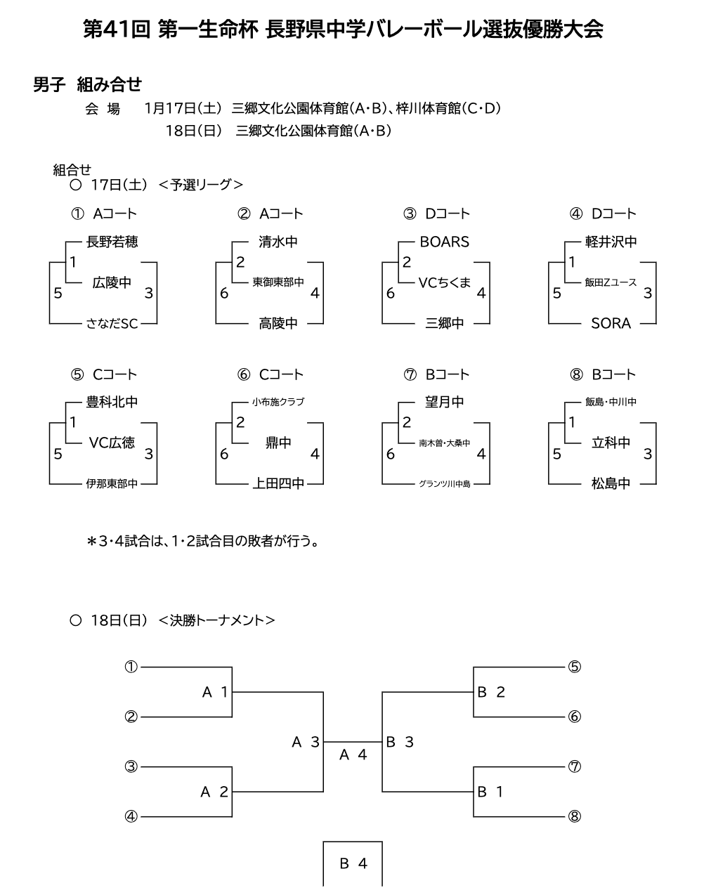 試合結果予選グループ戦 1月17日(土)