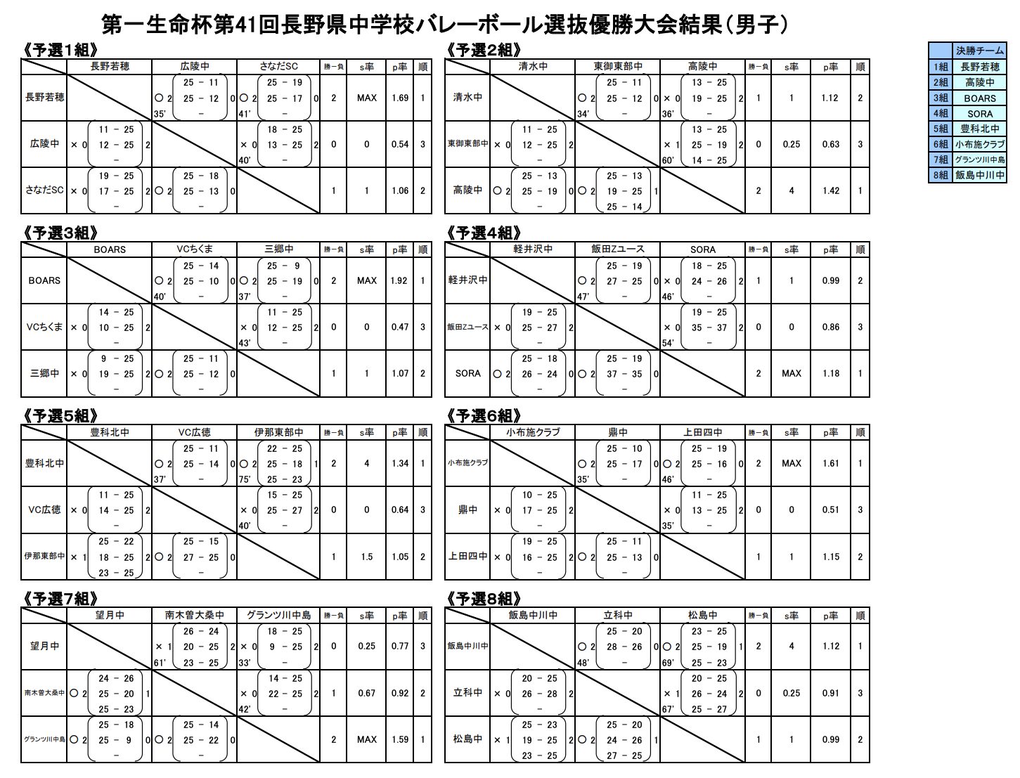 ◆女子試合結果は、下記記事を参照下さい。