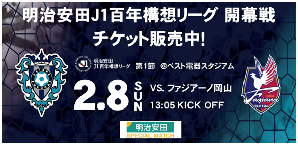 2026年2月8日(日)明治安田J1百年構想リーグ 第1節 ファジアーノ岡山戦