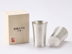 大阪の伝統工芸品、大阪浪華錫器の錫タンブラーに本ホテルのロゴを入れた。1万3200円で販売している。