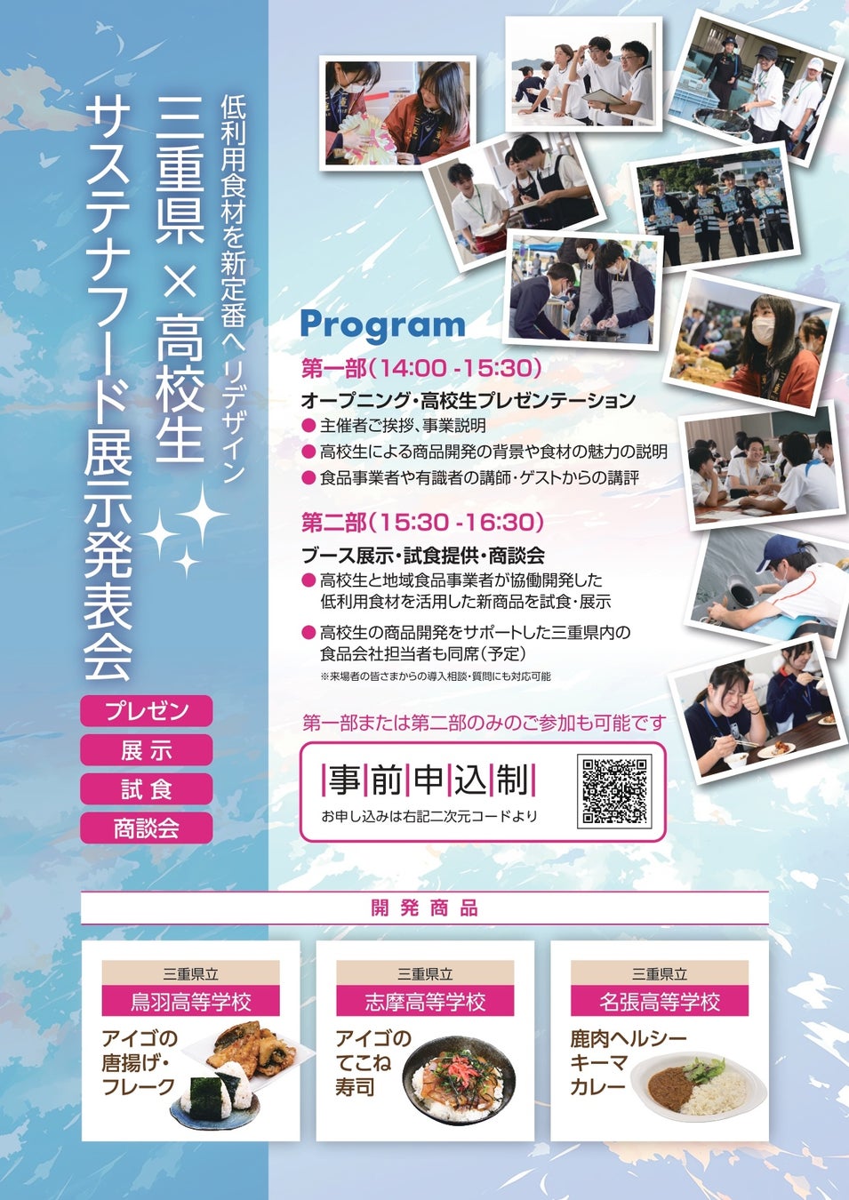 名称:三重県×高校生 サステナフード展示発表会〜低利用食材を新定番へリデザイン〜