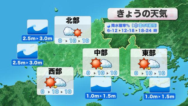 夕方ごろから雲が多くなりますが、天気の崩れる心配はないと見込んでいます。