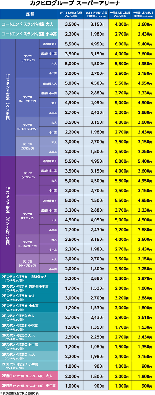 ●カクヒログループスーパーアリーナ 会場図・価格表のご案内